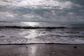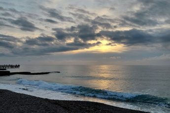 Вновь пасмурно с утра в Приморском. Прохладно, +8. Море слегка волнуется. Солнце за плотной толщей туч