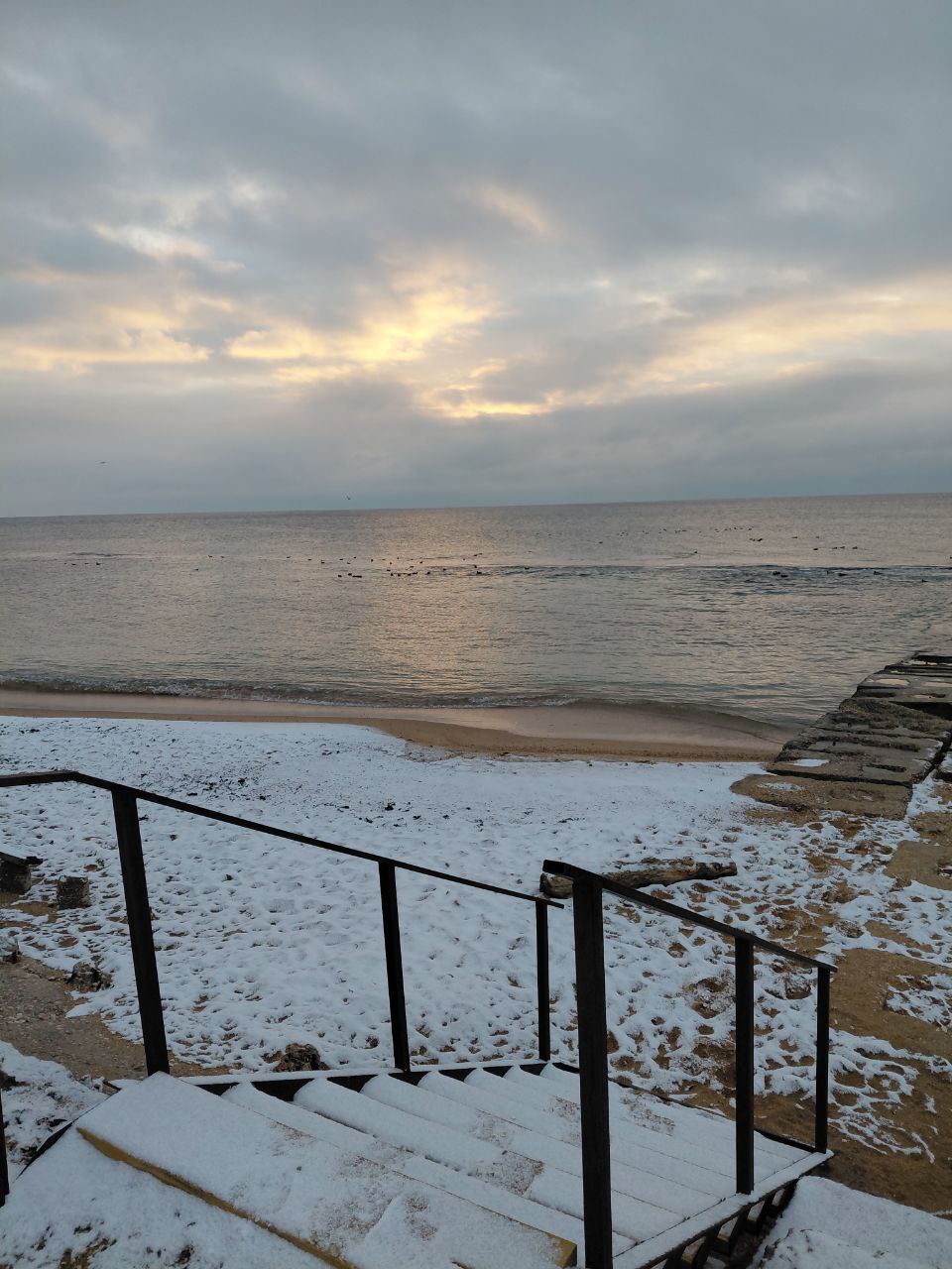 Восход солнца в Приморском в первое снежное утро состоялся. Очень красиво! Правда почти сразу же солнце исчезло в толще туч и облаков. Обещают ещё снег. Наверное, Новый год в этом году будет снежным. Посмотрим.