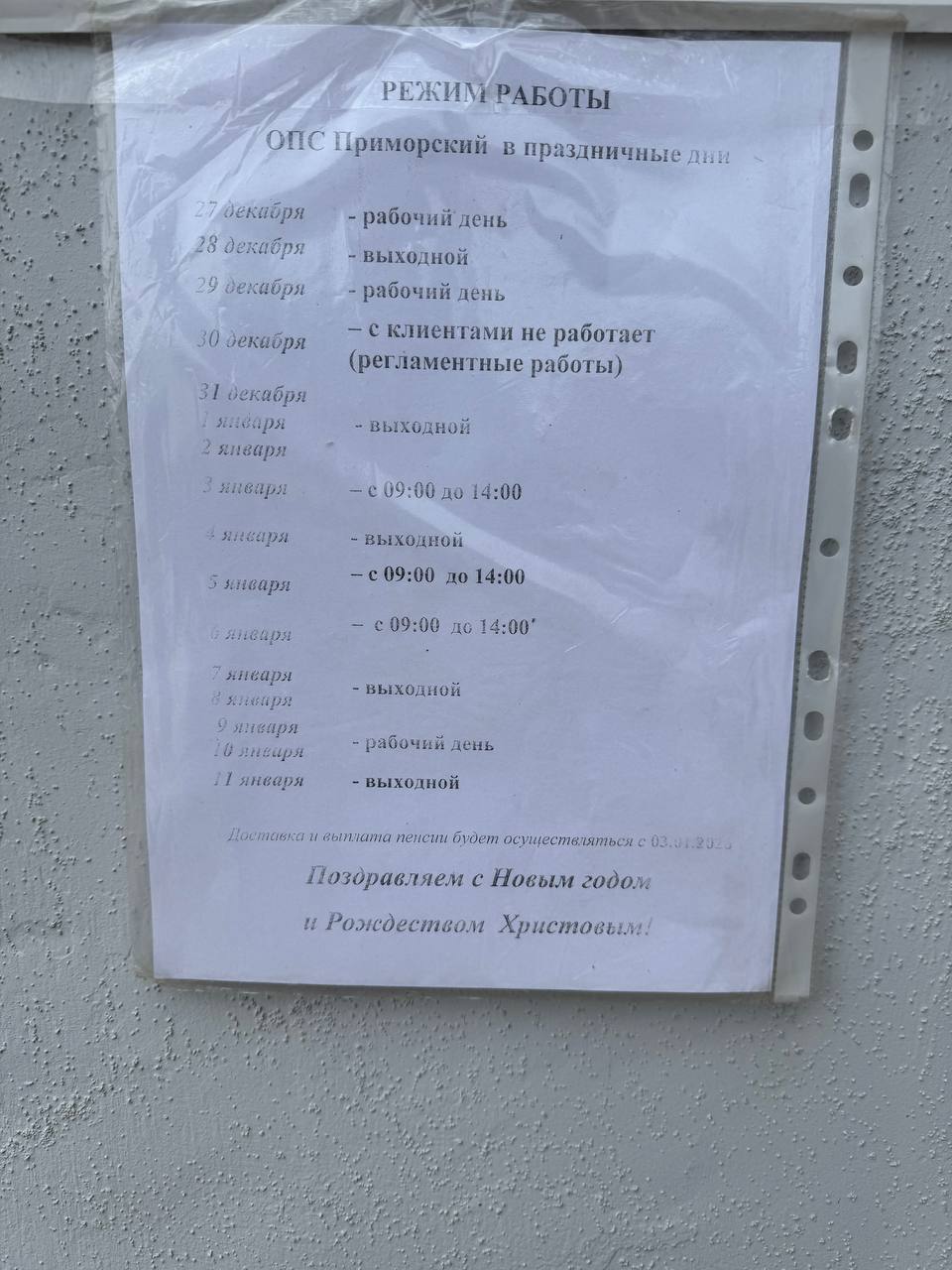 Главная » Новости График работы почтового отделения 298176 в праздники Новости Автор primВремя чтения 1 мин.Просмотры 18Комментарии 0Опубликовано 29.12.2025 Работа почтового отделения 298176 ул. Южная 13 в праздничные дни.