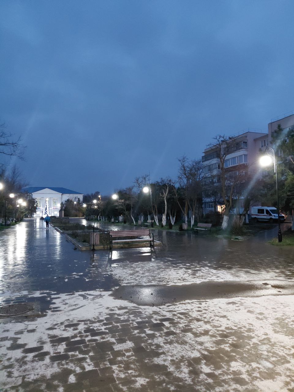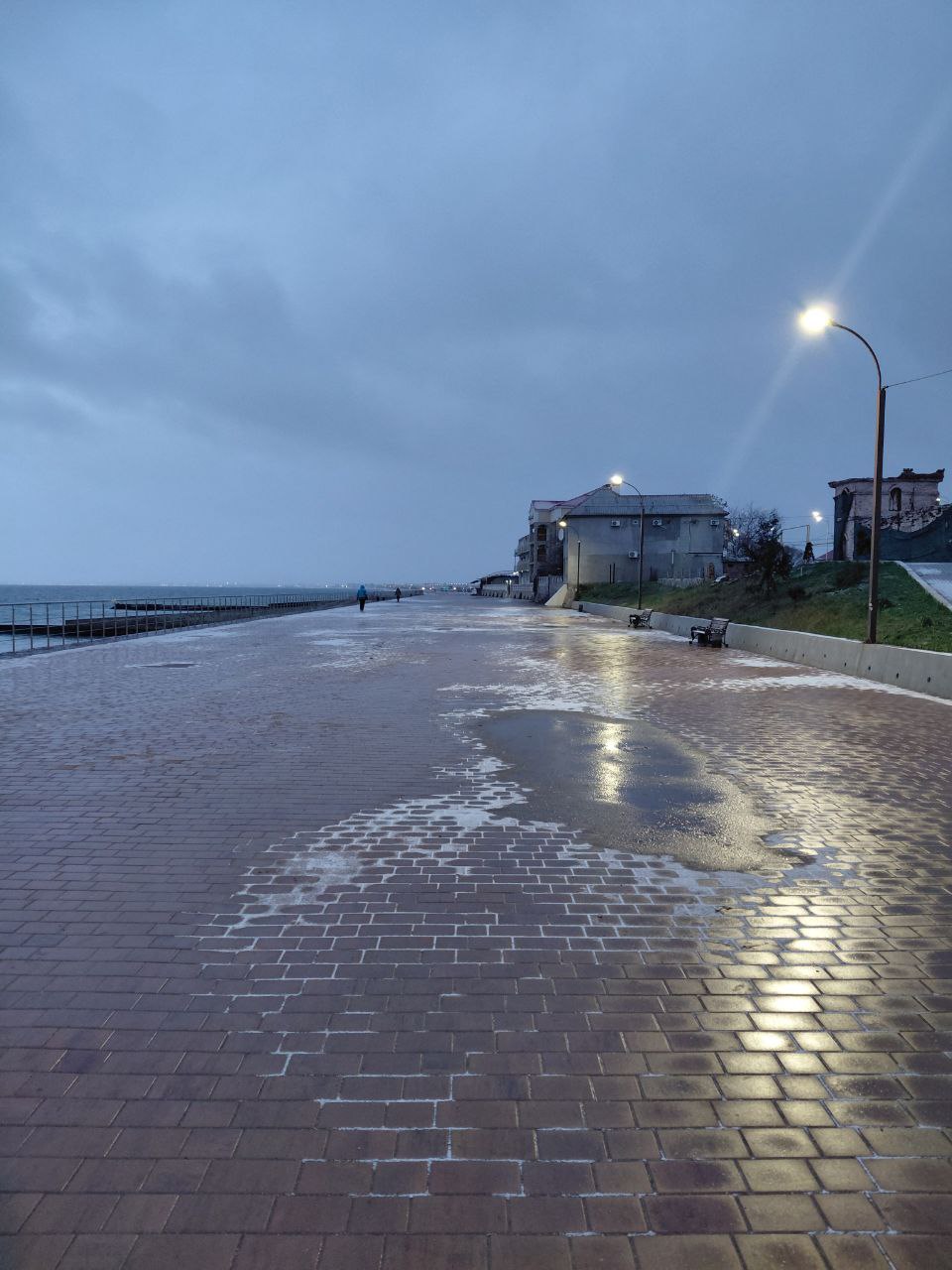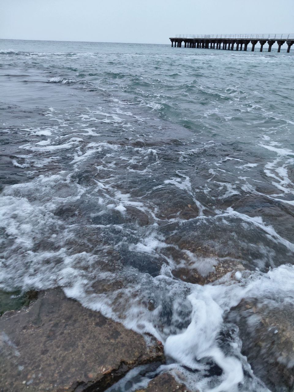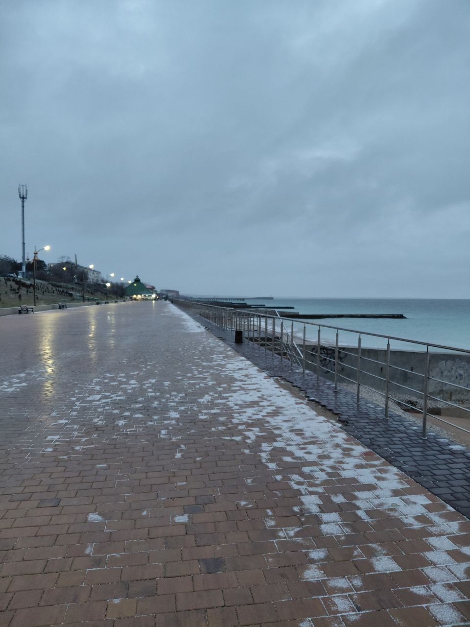 Холодновато с утра сегодня в Приморском. +1, а по ощущениям -6. Руки стынут. Идёт мелкий снежок, крупа, правильней сказать, и сразу же тает, а что-то потихоньку собирается. Море немного волнуется. Всё в тучах и без проблесков. Наша крымская зима. Интересно, какая будет погода на Новый год?