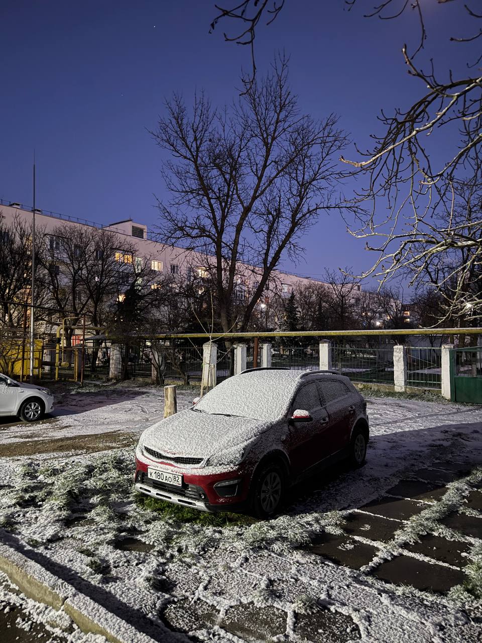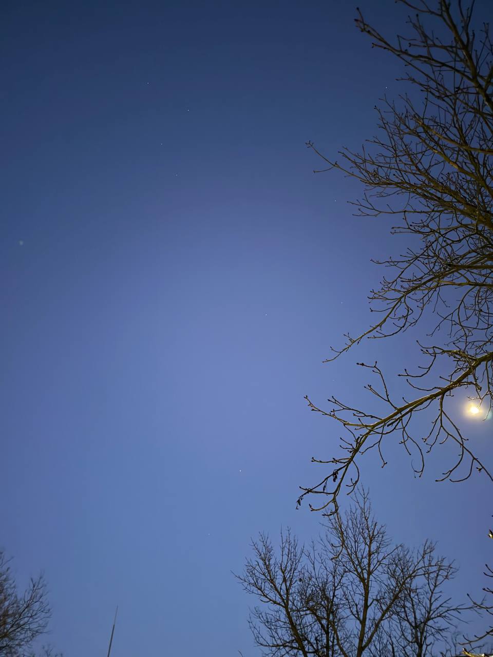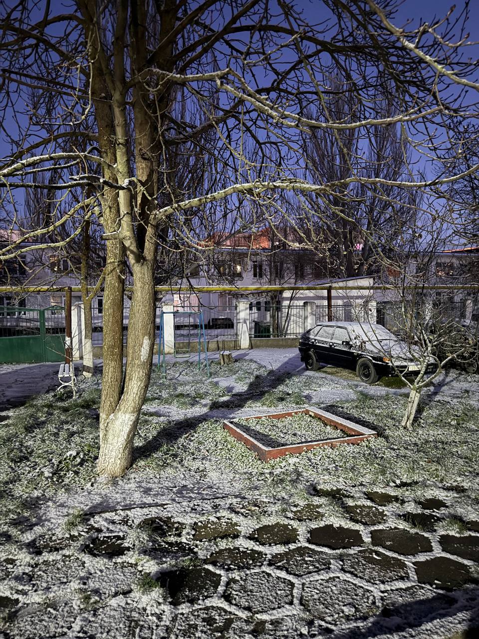 Чистое синее небо, луна и выпал снег. ❄️ очень красиво, перед Новым годом.