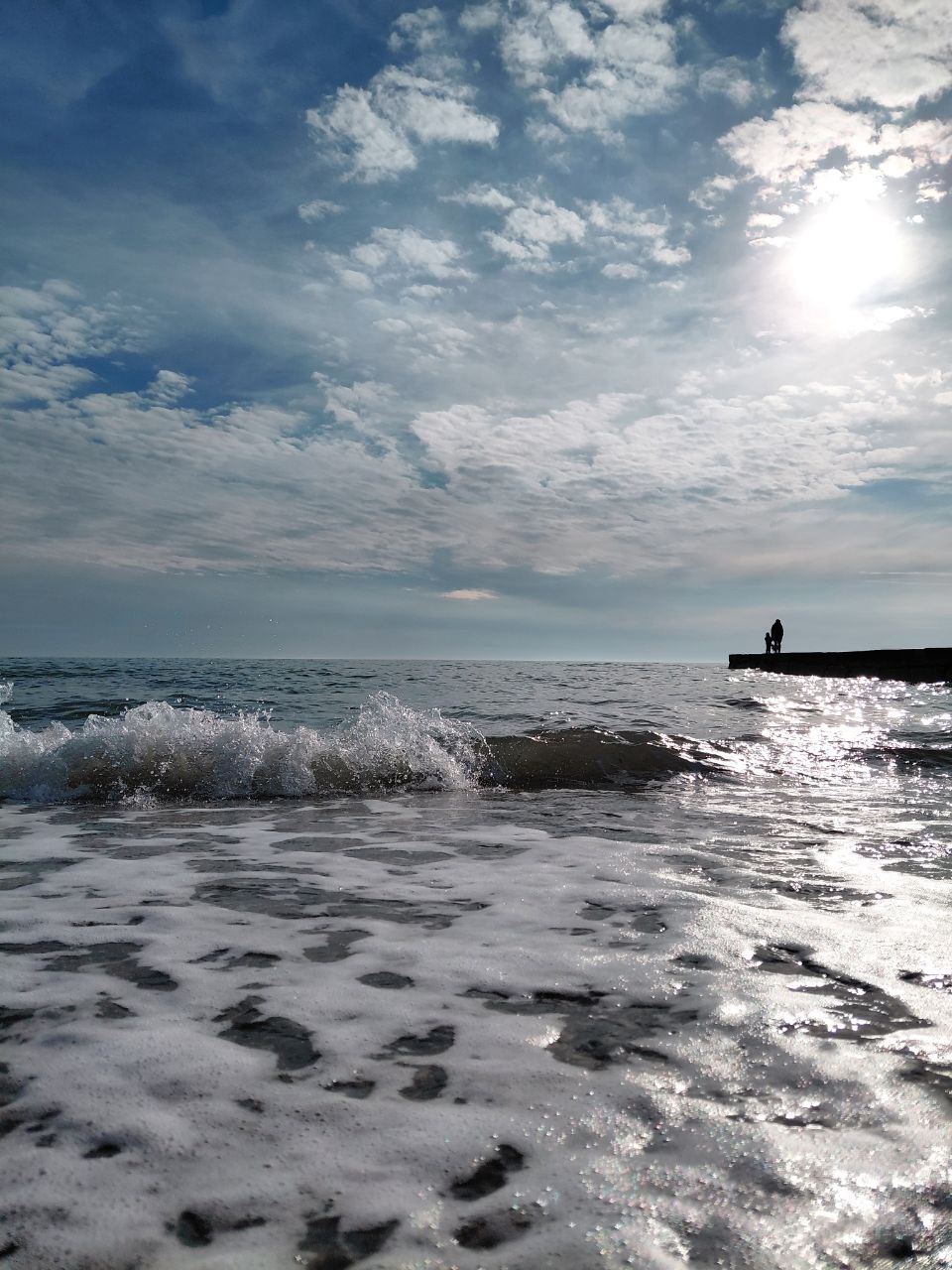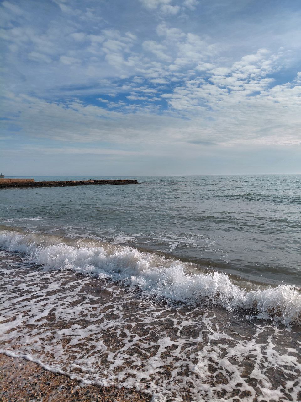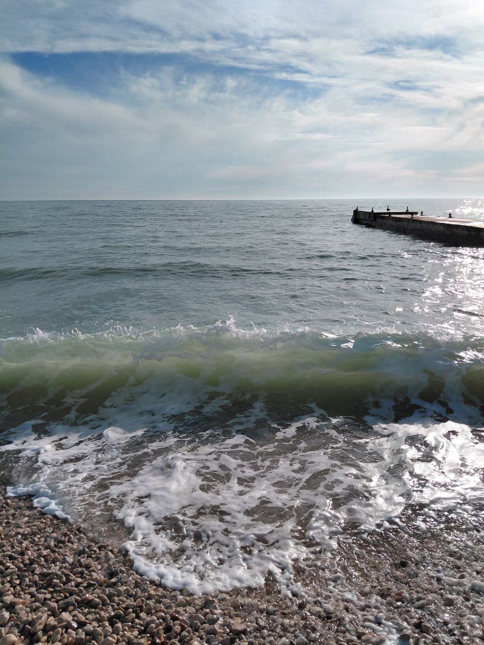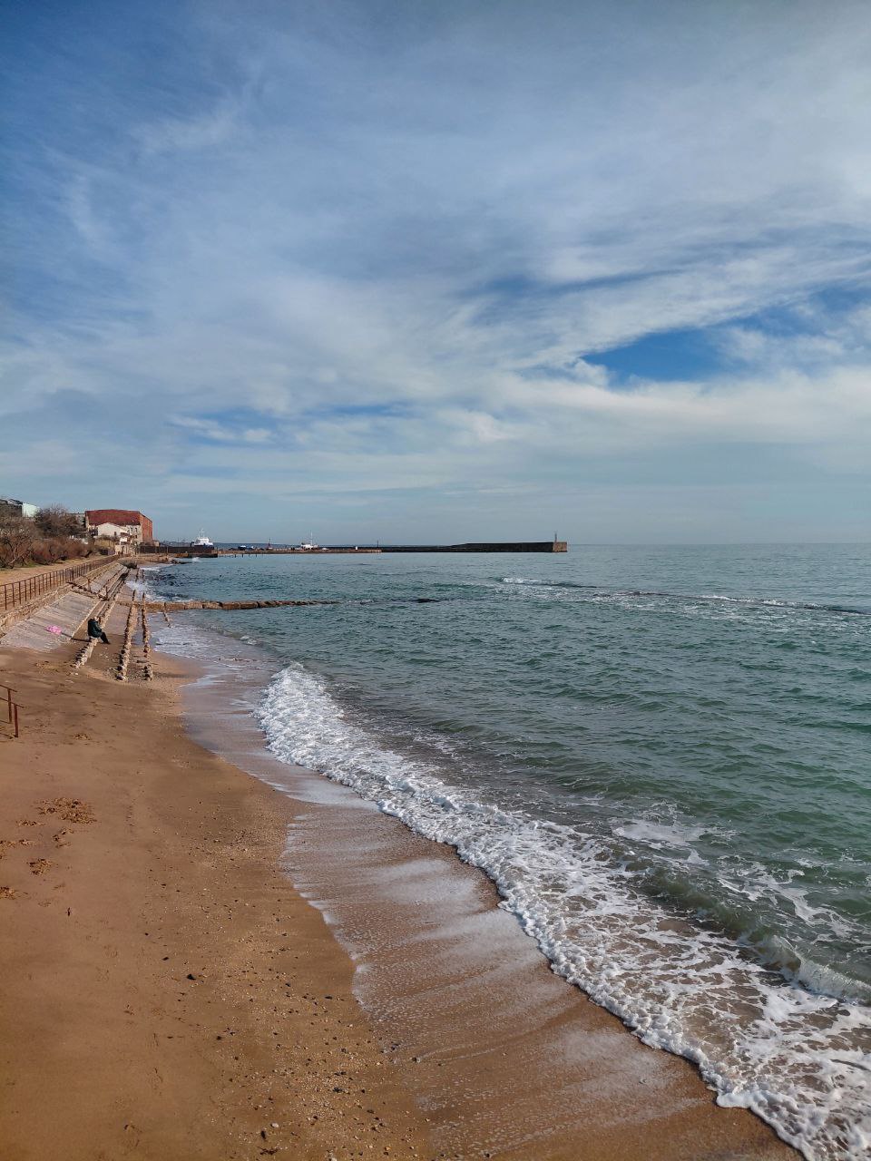 Сегодня в Приморском, накануне Рождества, совсем тепло, +12. Солнечно, несмотря на облака. Почти тихо. Море после ураганного шторма понемногу успокаивается. Такая красота! И дышится на берегу очень хорошо.