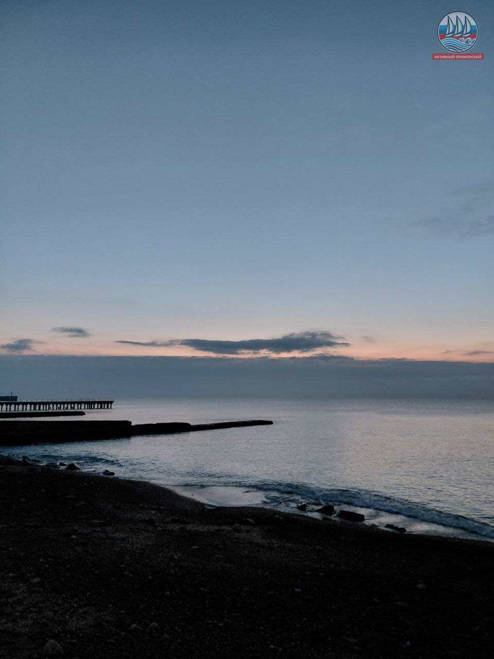Тихое морозное утро сегодня в Приморском, -4, а по ощущениям -8! Море успокоилось. Весь горизонт захватили тучи, поэтому солнце так и не смогло прибыть на свидание. А день, скорей всего, будет солнечным.