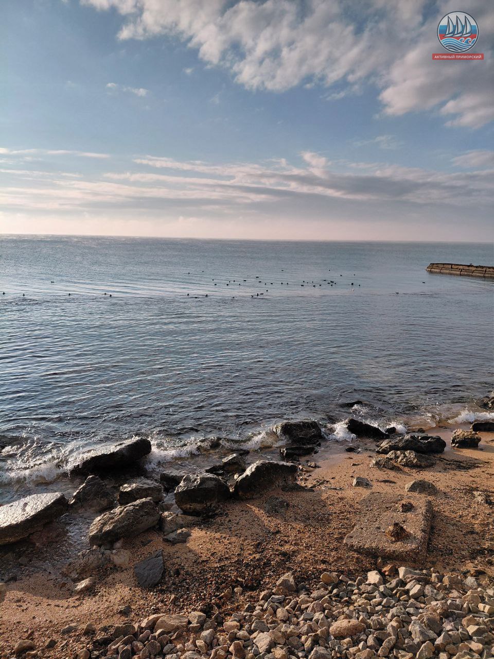 Холодно сегодня с утра в Приморском. Мороз -3, а по ощущениям -7. Руки стынут, и лицо быстро замерзает. Чувствуется повышенная влажность, всё-таки рядом морюшко наше. Солнце пытается светить, но тучи и облака всё время его закрывают. Хочется очень, чтобы солнце ещё и грело. Весны уже хочется…