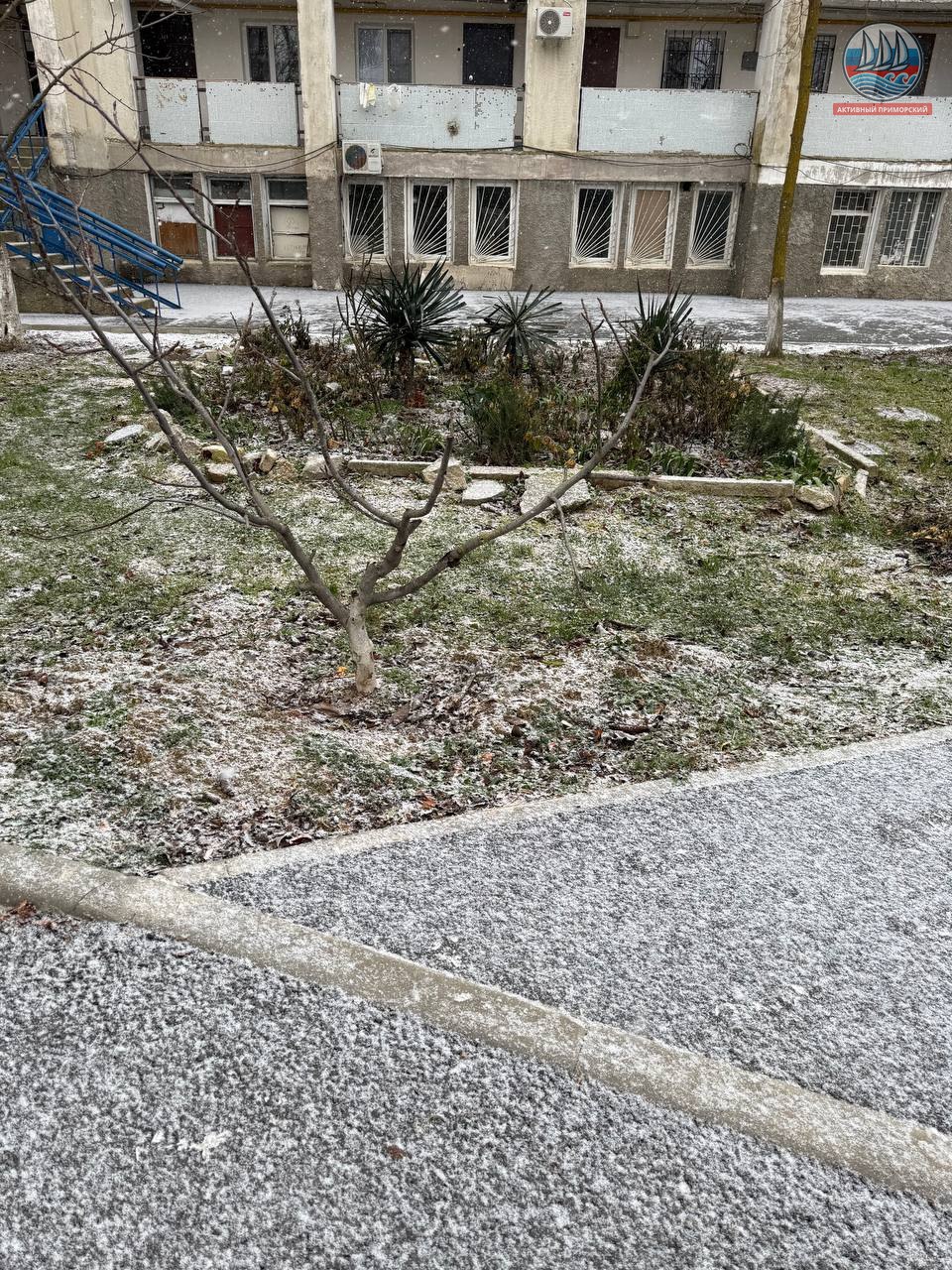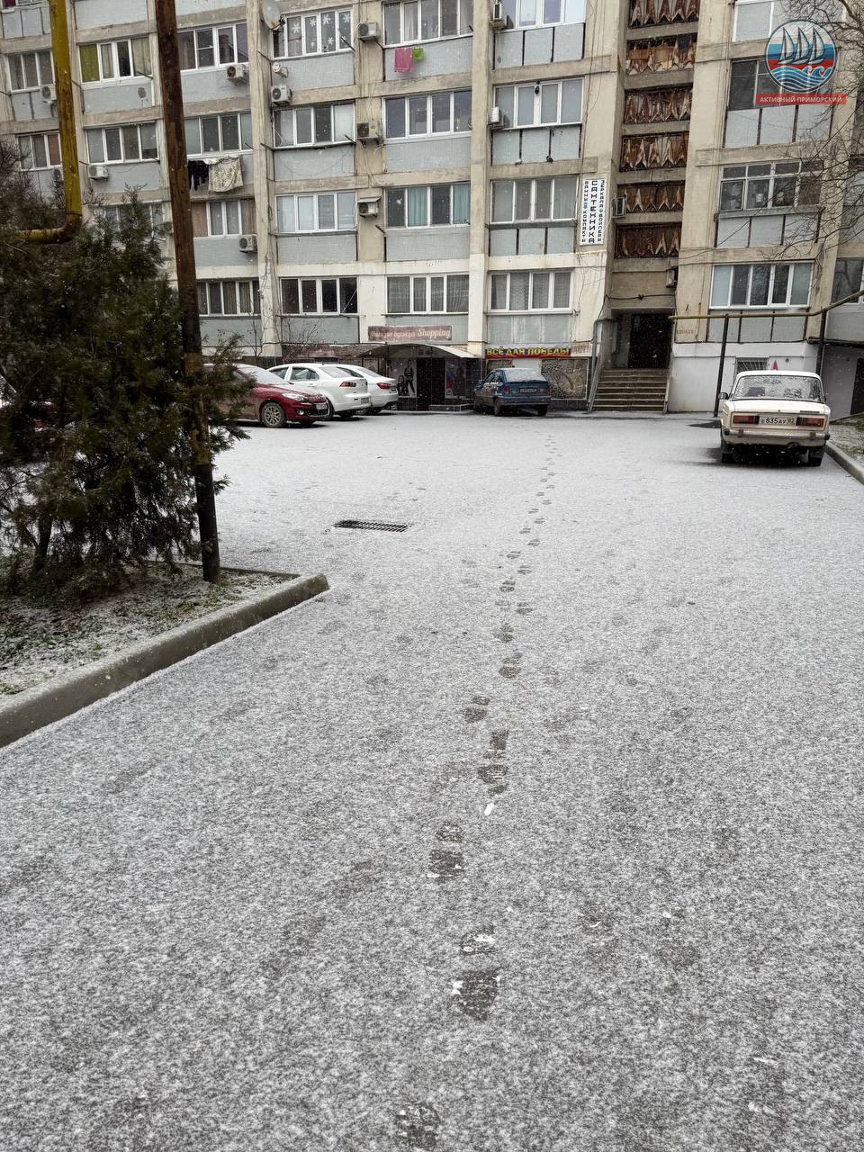 Снежок пошел. Обещают целый день, может быть 🤔 и на санках получится покататься у детей.
