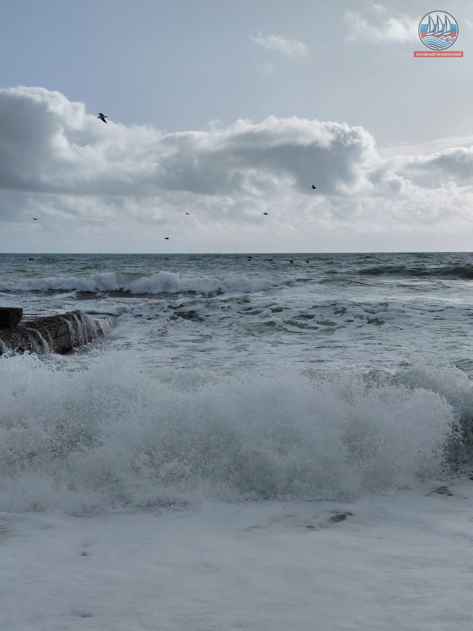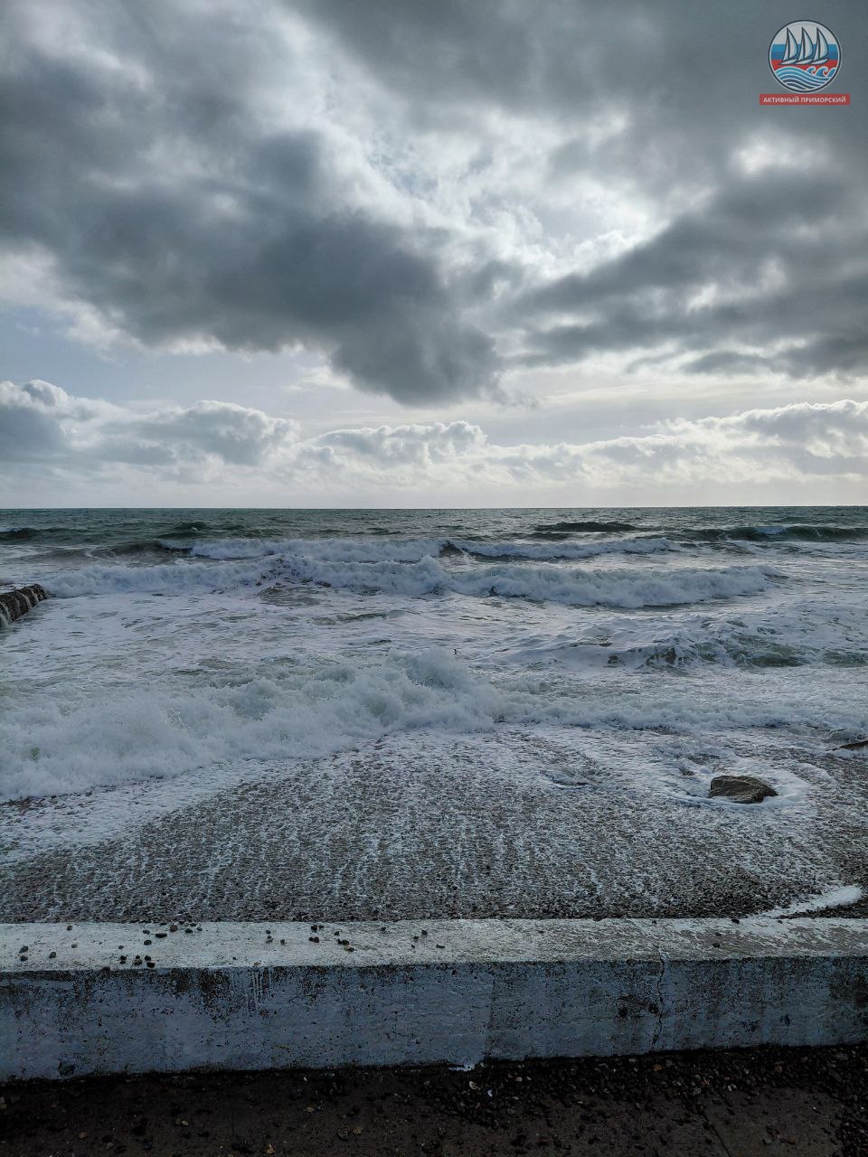 Видно у нашего моря в Приморском его любимое состояние — волнение, шторм! Не может наше море долго оставаться спокойным! Но всё-таки как же красиво! И шумно!