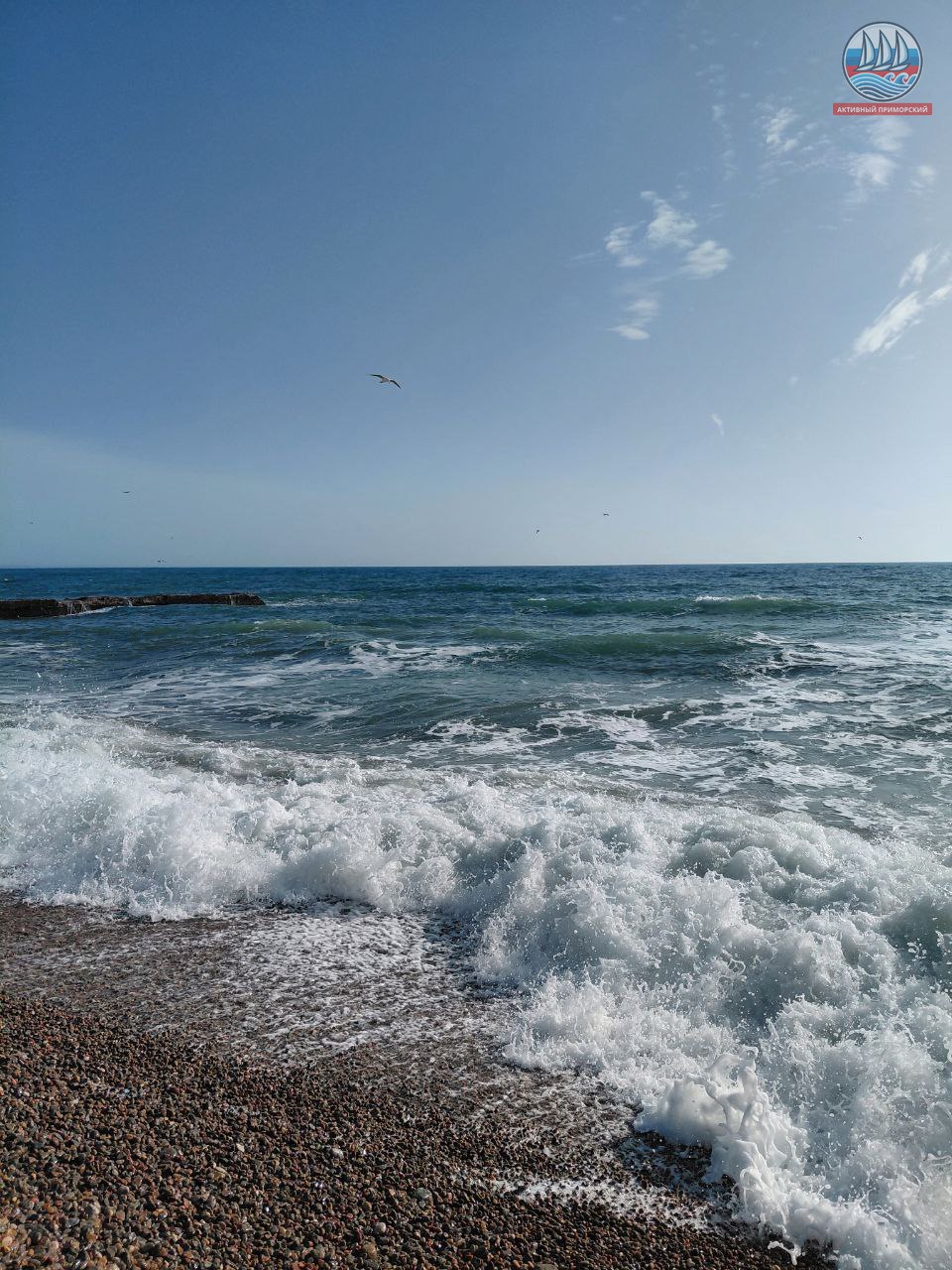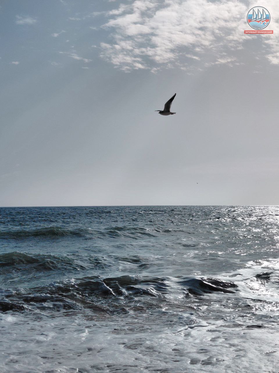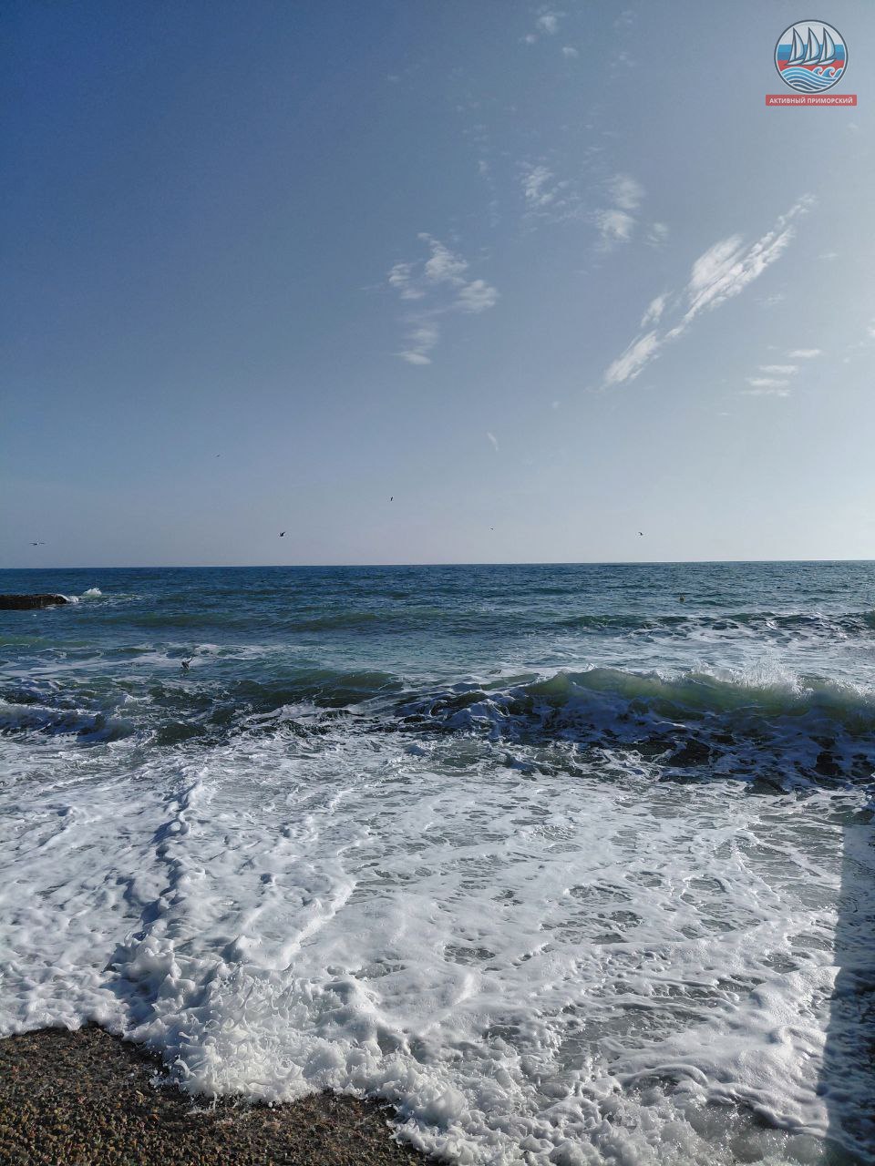 Утро сегодня в Приморском было серым и не приметным, даже моросил дождь. А днём вдруг тучи расступились, обнажив голубое небо, и засветило яркое солнце. Сразу же всё вокруг ожило, — и волнующееся море, и птицы, да и весь посёлок. Тепло, +9, хотя к концу недели обещают похолодание и даже морозы. Всё верно, ведь пока ещё зима на дворе. Очень красиво!