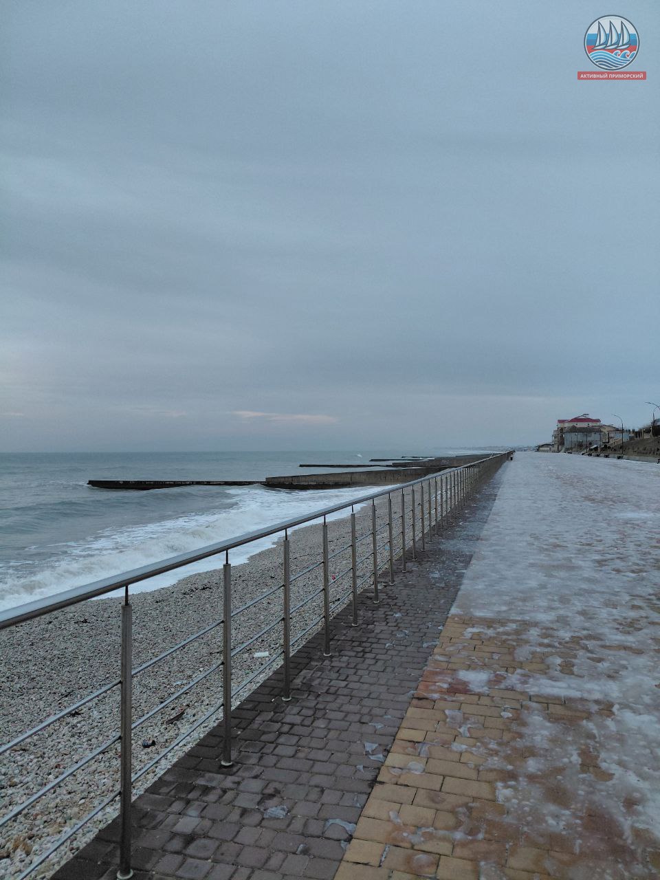 Сегодня в Приморском с утра облачно, -1-3. Все неубранные дорожки и дороги, превратившиеся вчера в снежную кашу, сегодня, как ни странно, замёрзли. Поэтому передвигаться в любых направлениях с утра в посёлке сложновато.