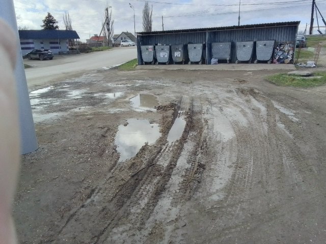Ув. Администрация поселка, просьба навести порядок, засыпать лужу, каждые 5 минут подъезжают машины к бакам и людям не пройти!
