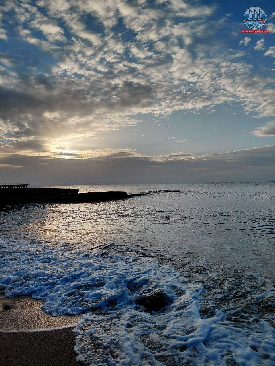 Вот и долгожданная весна наступила! Но пока без тепла, на улице мороз, -1-2. Все лужи на берегу замёрзли. Песок на пляжах побелел. Почти безветрие. Море слегка перебирает волнами, но до штиля ещё далеко. Красиво!