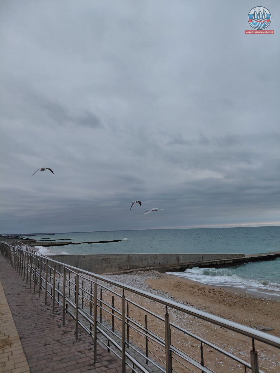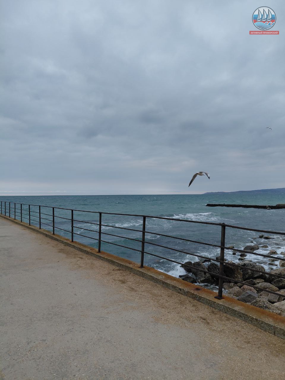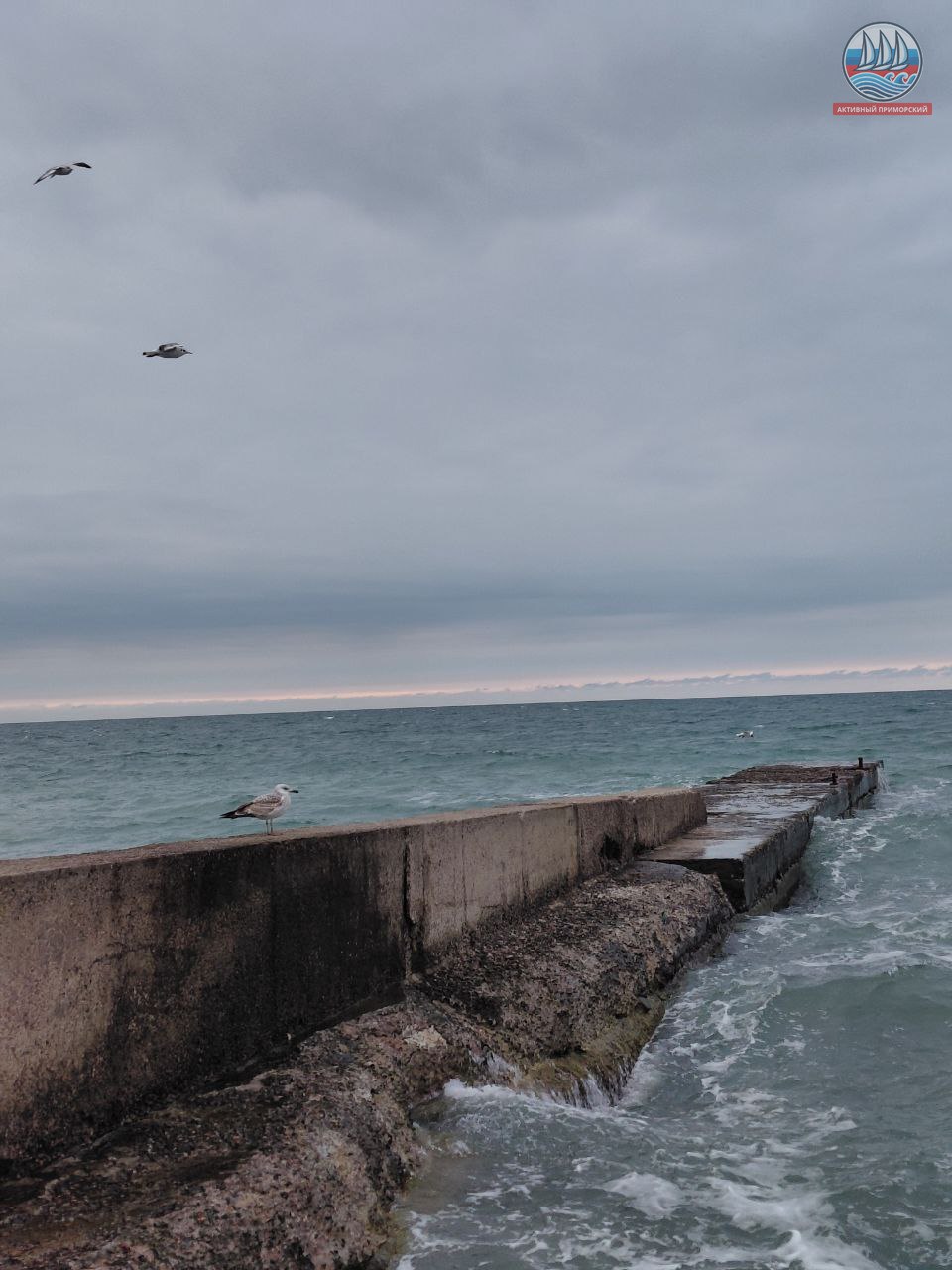 В Приморском с утра сегодня облачно, серо и неприметно. Море решило вновь поволноваться. Прохладно, +4, и на берегу ветер. Кругом летают чайки. На весну совсем не похоже.