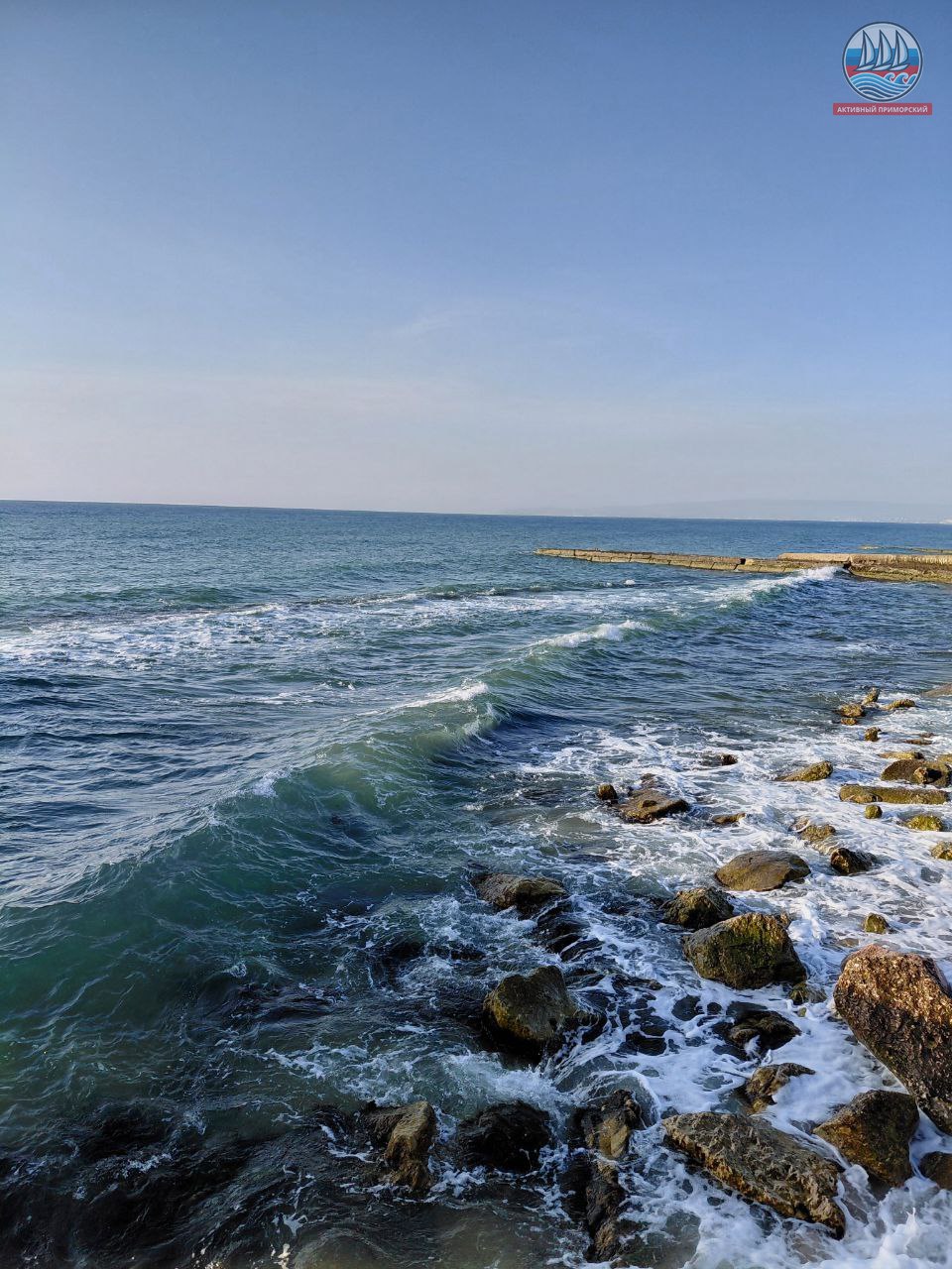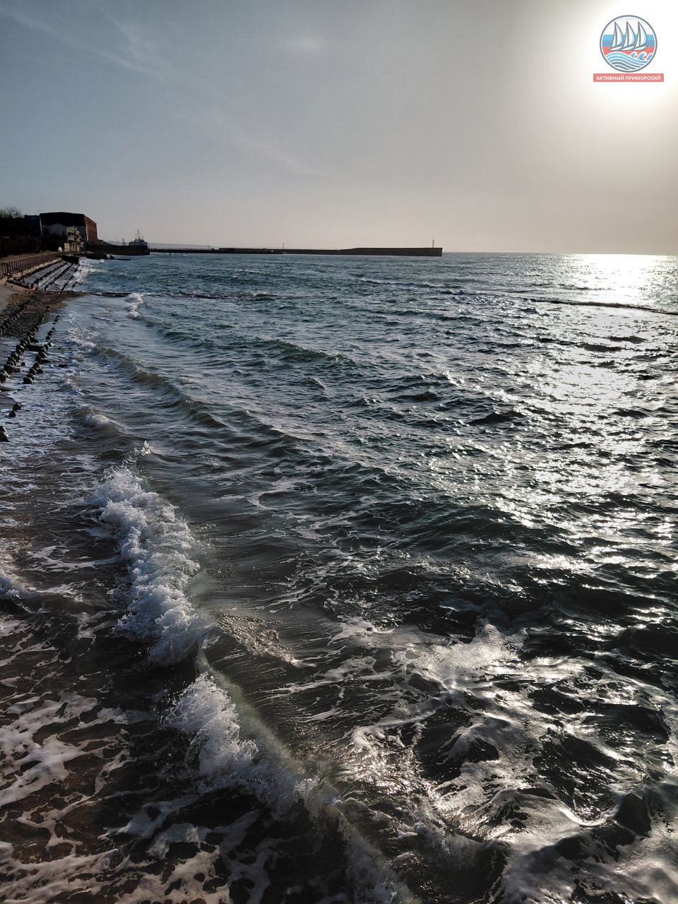 Море в Приморском опять решило поволноваться. Сегодня с утра немного прохладно, +4. И ветерок. Зато дышится очень хорошо. Красота!