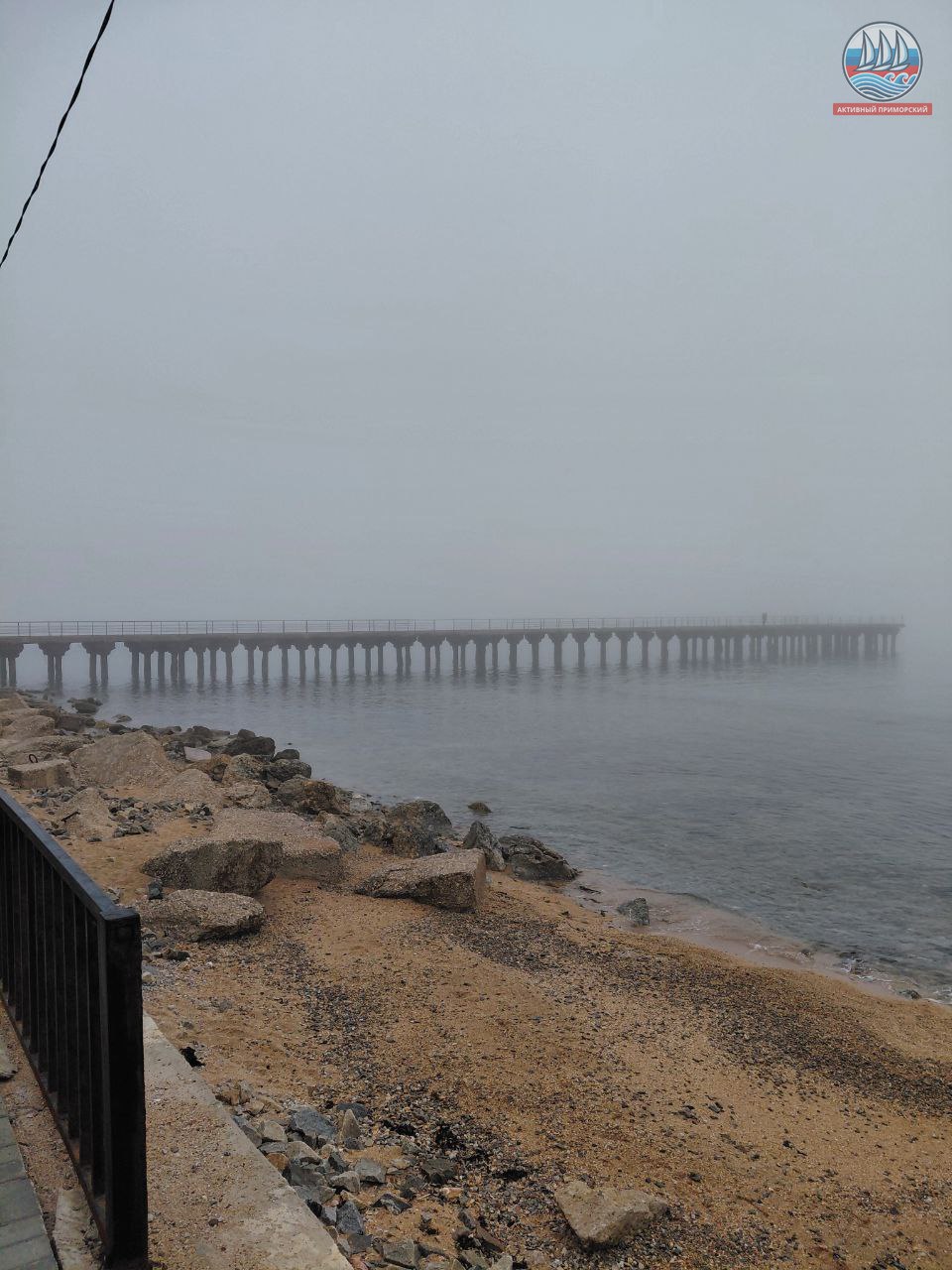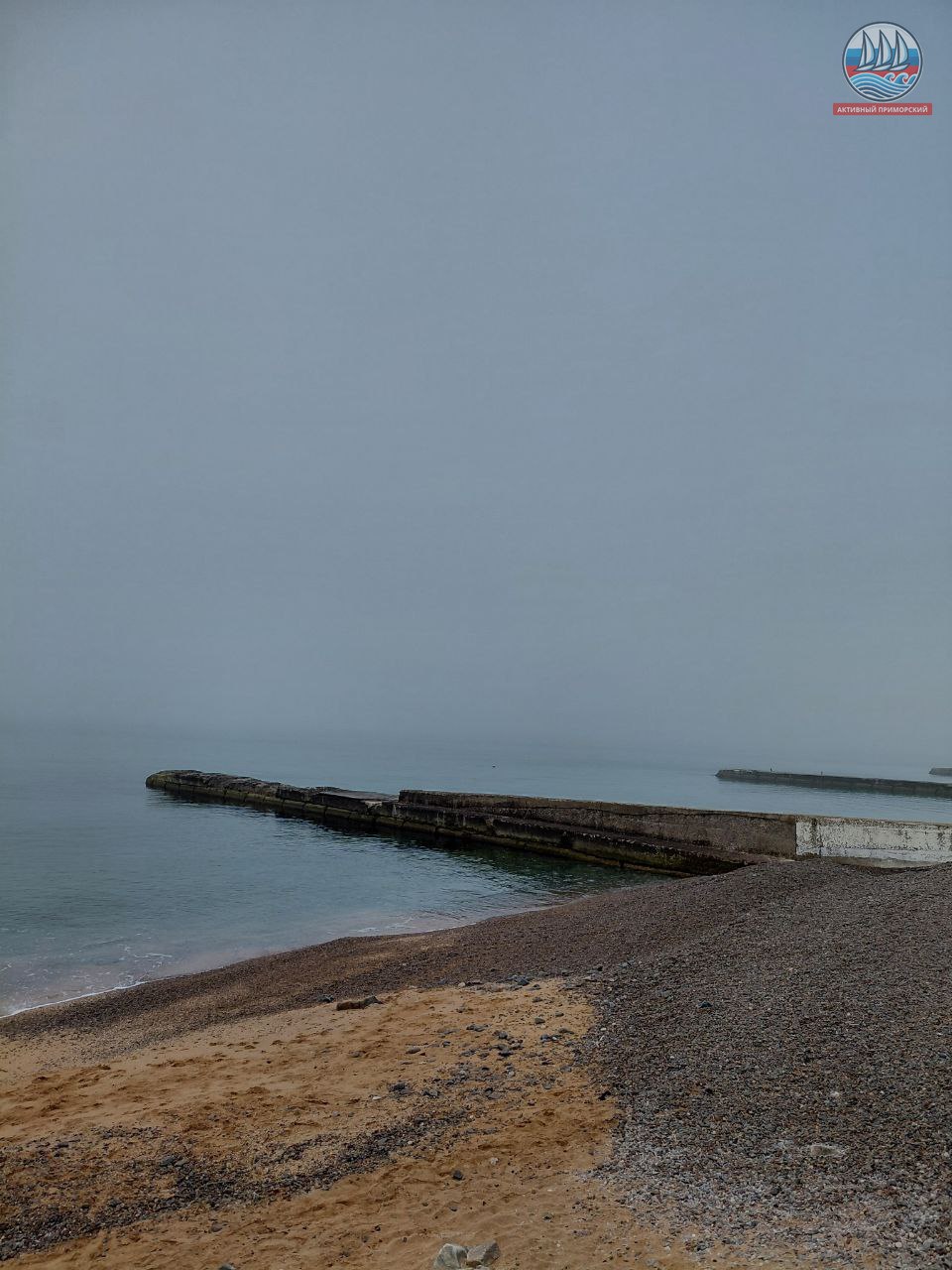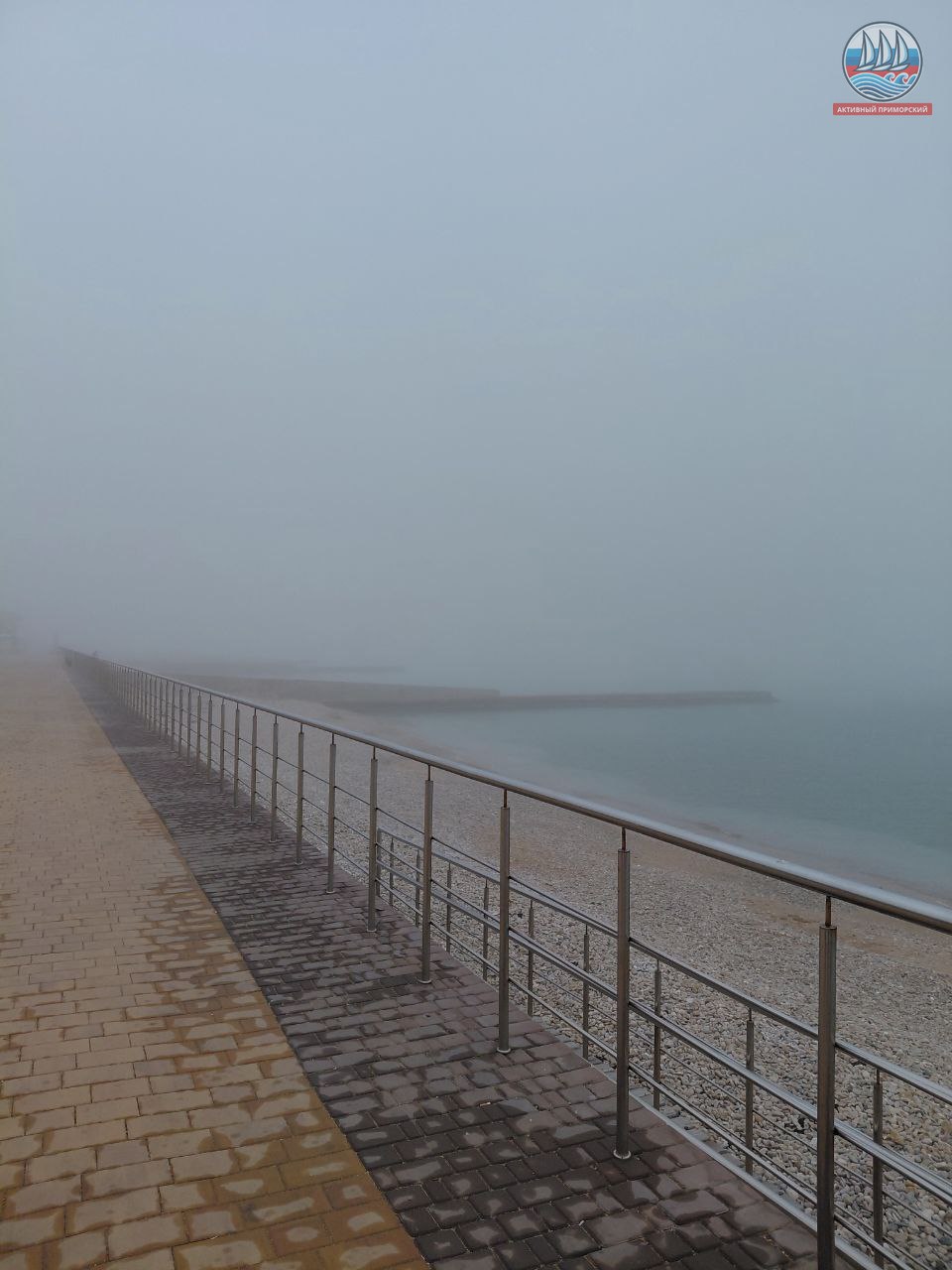 Туман с утра сегодня в Приморском. Холодно, +2+4. Руки стынут. А вот вода в море потеплела. Возможно, течение какое-то. Но, как поётся в песне, у природы нет плохой погоды…