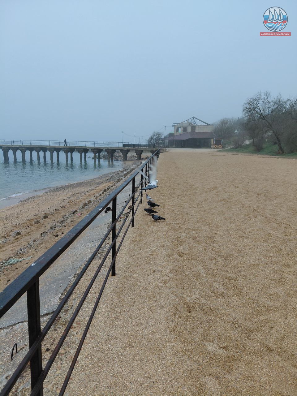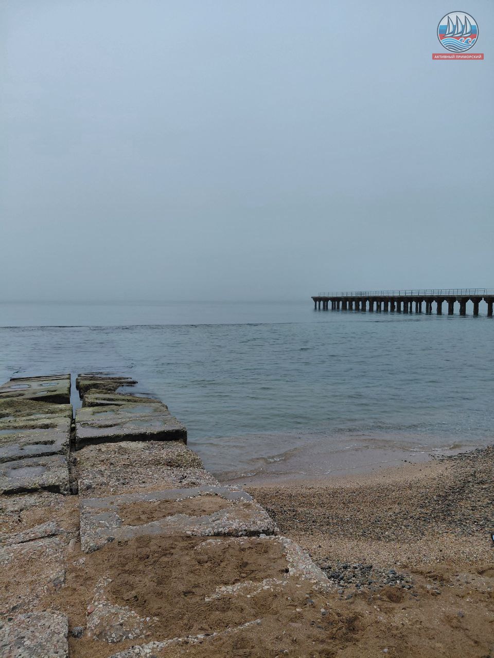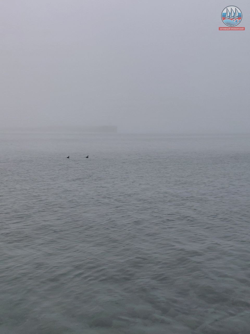 Туман с утра сегодня в Приморском. Холодно, +2+4. Руки стынут. А вот вода в море потеплела. Возможно, течение какое-то. Но, как поётся в песне, у природы нет плохой погоды…