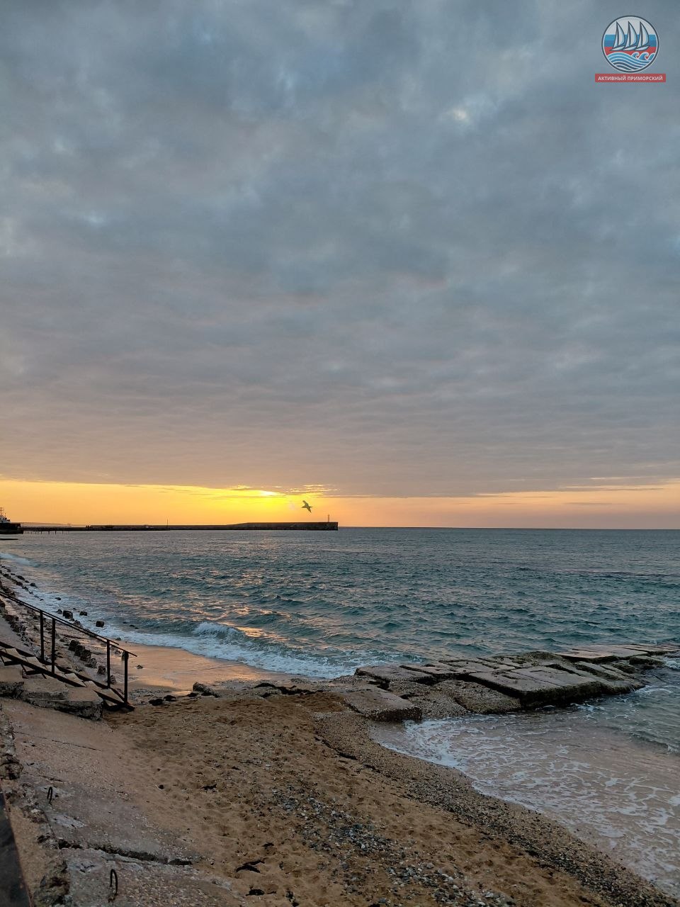 Сегодня в Приморском +6, по ощущениям +3. Небольшой ветерок. Море слегка волнуется. И солнце! Золотое солнце! Всем нам шлёт привет! Очень красиво!