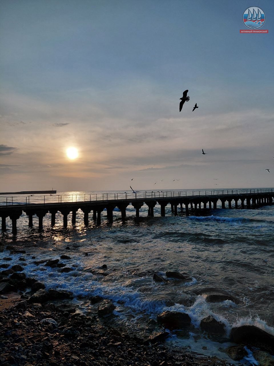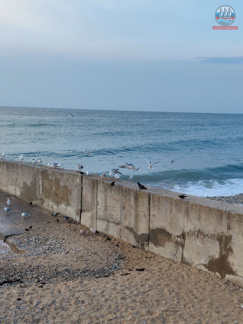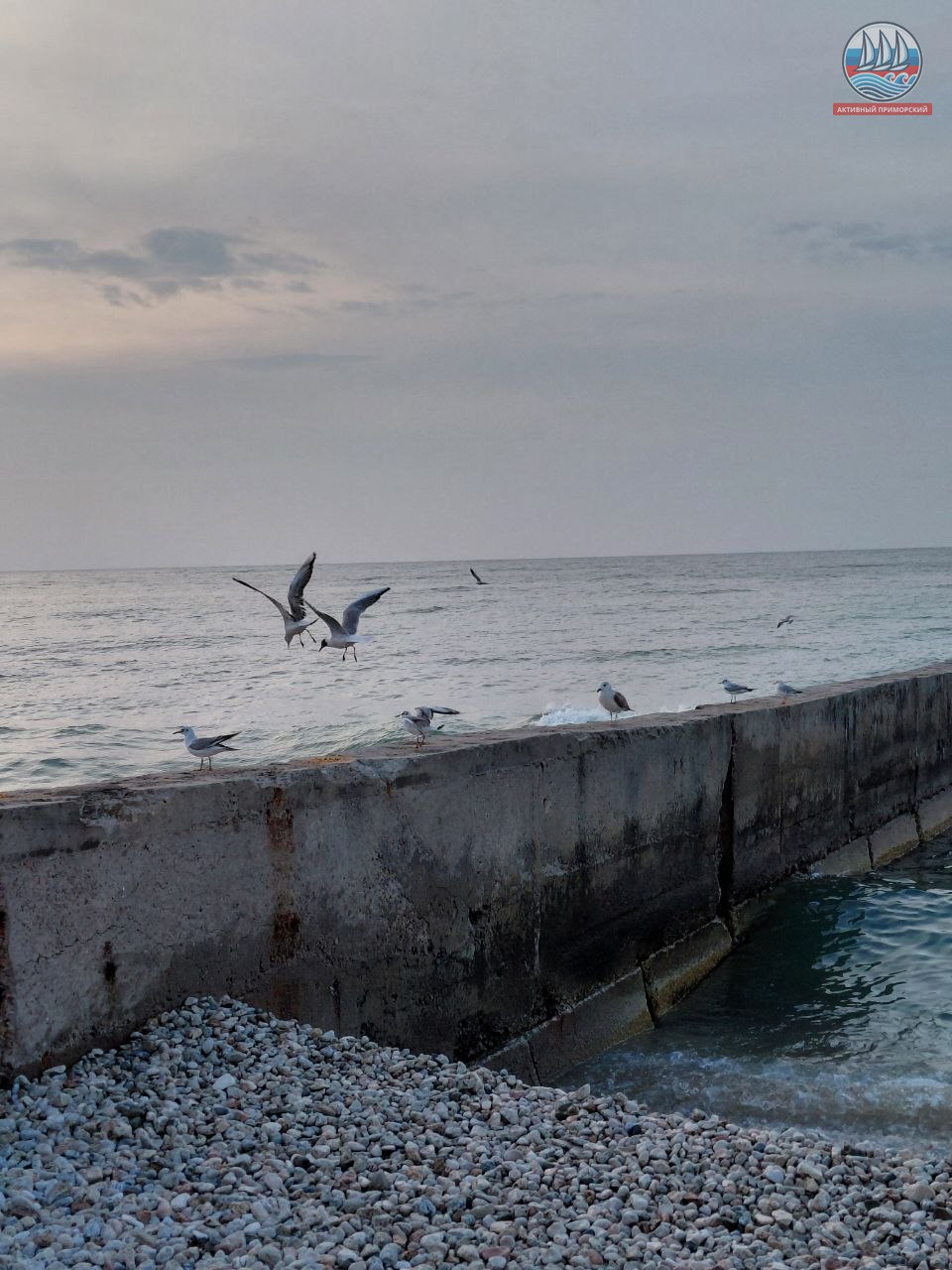 Пока с утра прохладно, но обещают долгожданное потепление. Море немного штормит. Много чаек. Солнце долго не могло прорвать толщу туч. И, только поднявшись выше, порадовало нас своим появлением. Красота!