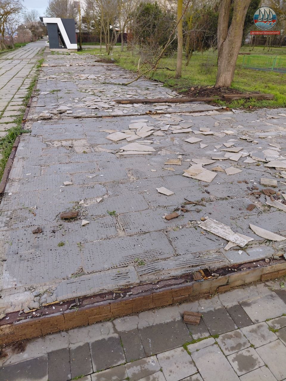 Стыдно перед детьми, которым сложно объяснить, почему какие-то дяди и тёти не убирают здесь. Это ведь место и очень травмоопасное! Везде битая острая плитка.
