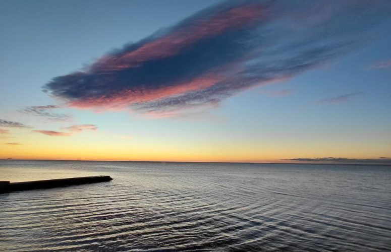 Снежное утро в Приморском: восход солнца и тучи